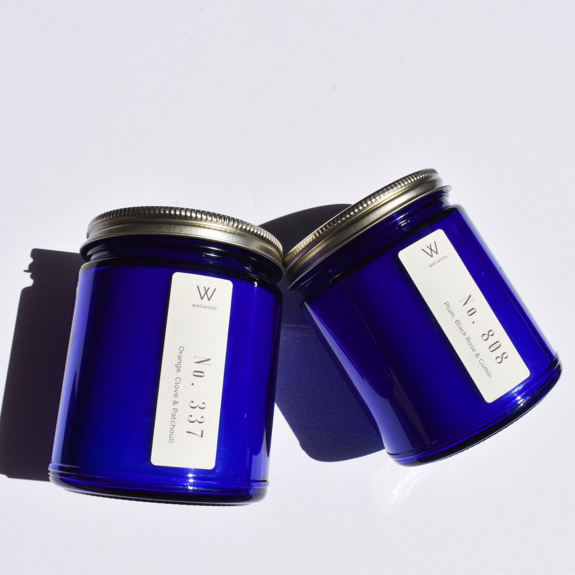 Our Earth Edit features sleek, cobalt tumblers that diffuse candlelight for a soft blue glow. These vessels add a pop of color to your space, a conversation piece that benefits more than those in the room. The off-center wooden wick provides a light crackle to create a soothing ambiance.